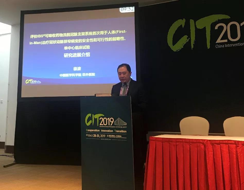 Professor Bo Xu made a report titled "Prospective, Single-center clinical Trial to Evaluate the Safety and Feasibility of IBS Sirolimus-Eluting Iron Bioresorbable Coronary Scaffold System First-in-Man Treatment of Coronary Artery Stenosis ". Biotyx's IBS®™ Sirolimus-Eluting Iron Bioresorbable Coronary Scaffold is the only fully degradable vascular scaffold in the world that uses iron as a material, and is currently the only fully degradable scaffold with a thin wall design. Professor Xu announced the latest progress of the IBS-FIM study. The study currently implants 57 cases worldwide. Fuwai Hospital has completed a total of 45 single-center studies, of which 2 cases were broadcast live at the 2018 CIT conference. No adverse events occurred. In the future, with the accumulation of clinical experience and a large amount of relevant data, it will further prove the safety and effectiveness of IBS®™ sirolimus-eluting iron bioresorbable coronary scaffolds.